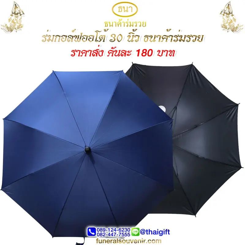 ร่มกอล์ฟ ขนาดใหญ่ ถือว่า ร่ม ที่ขายดีนิยมแจกเป็น ของชำร่วยงานฌาปนกิจ ถือว่าแจกของชิ้นใหญ่ให้กับผู้ล่วงลับแล้ว จะได้ใหญ่โต เป็นหน้าตาให้กับผู้ที่ชีวิตไปแล้ว ขายส่งร่มกอล์ฟ ขนาด 30 นิ้ว ยกกล่อง 1 กล่องมี 60 คัน ขายส่งคันละ 180 บาท